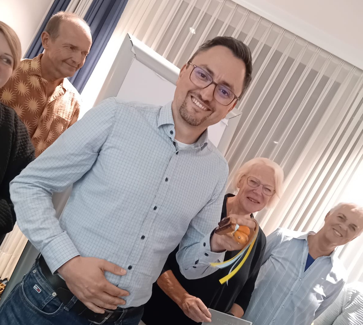 Michael Wenzel bekam symbolisch die mittlerweile schon fast historischen Stempel des Vereins überreicht. Der alte Vorstand wird die neuen Vorständlerinnen und Vorständler mit Kräften unterstützen, um gemeinsam die Übergangszeit so gut und reibungslos wie möglich zu bewältigen.