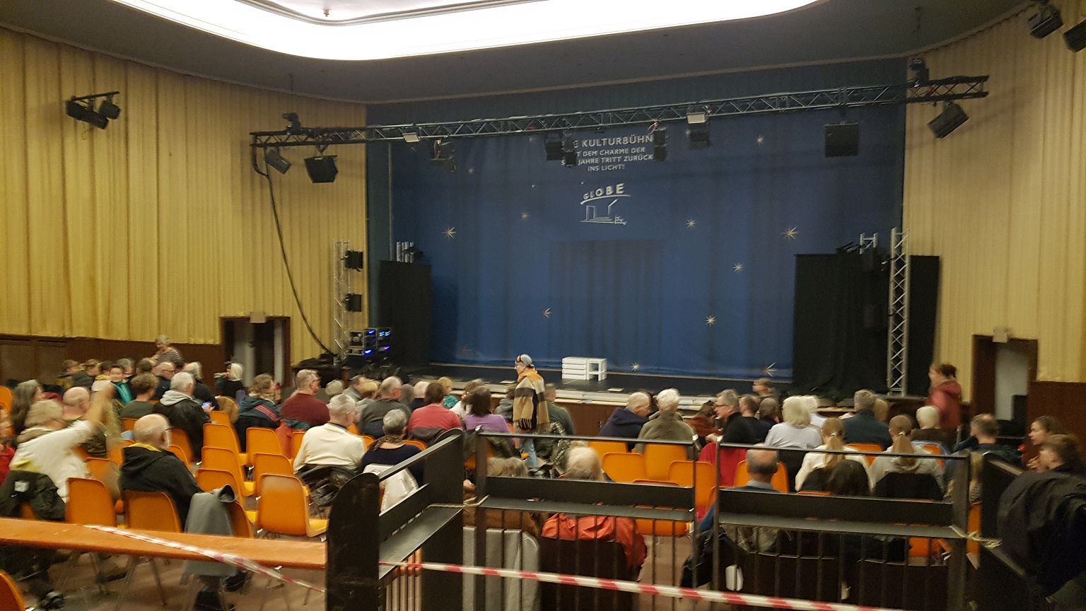 Am zweiten Novemberwochenende war es soweit. Der Moment, dem viele langjährig entgegengefiebert hatten, war gekommen. Mit einem kleinen Kulturfestival öffnete das GLOBE in Neu-Donnerschwee erstmalig seine Pforten für sechs kulturelle Veranstaltungen aus dem breiten Spektrum Theater, Film, Zirkus, Lesung und Musik. Mit dem bunten Programm wurde der große Saal eingeweiht, der in neuem, altem Glanz mit seinem ganz eigenen Charme erstrahlte.