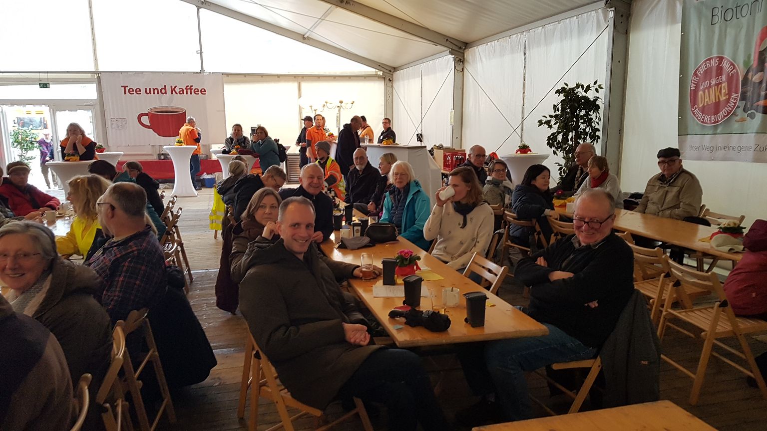 Nach getaner Arbeit gab es bei stärker werdendem Regen die gemütliche Abschlussveranstaltung im AWB-Zelt mit Suppe, Getränken und einer Tombola, bei der jedes Los gewinnt. Wie schon einmal vor drei Jahren zog ein Donnerschweer den Hauptgewinn, diesmal eine Reise in den Serengeti-Park nach Hodenhagen.